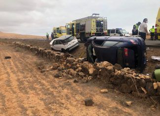 Tres heridos por una colisión frontal en La Oliva