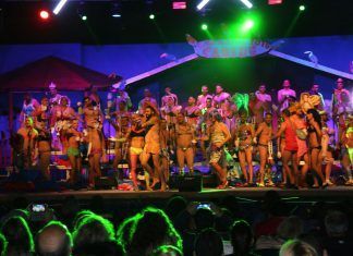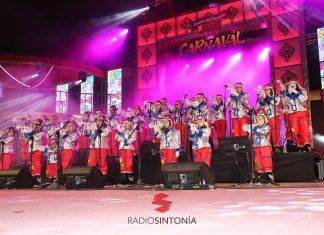 60 son los componentes de la Murga Los Garabatos, llegan desde el norte de Fuerteventura con la alegoría 26 años volando contigo, el diseño...